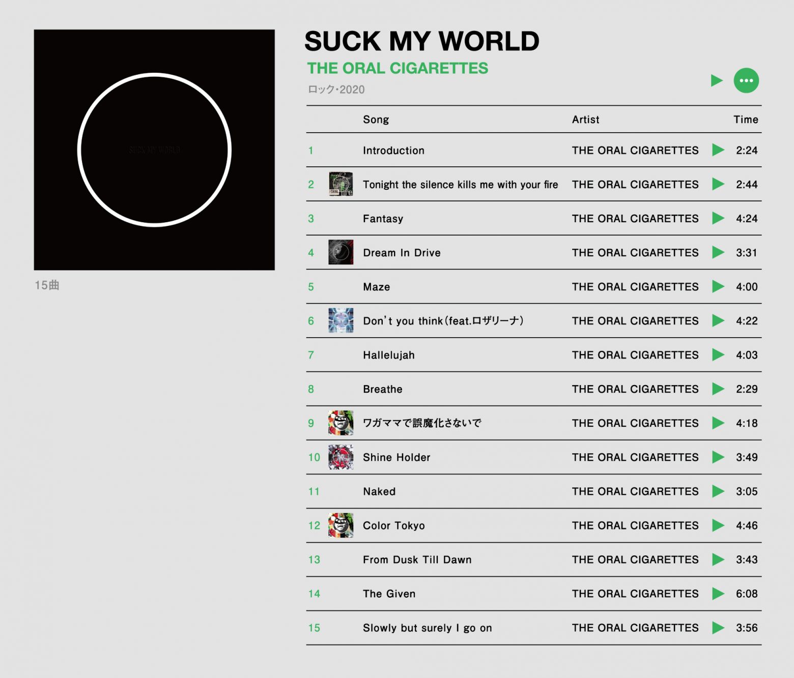 THE ORAL CIGARETTESが、4月29日に発売するニューアルバム「SUCK MY WORLD」に収録される全トラックタイトルが発表となった。
