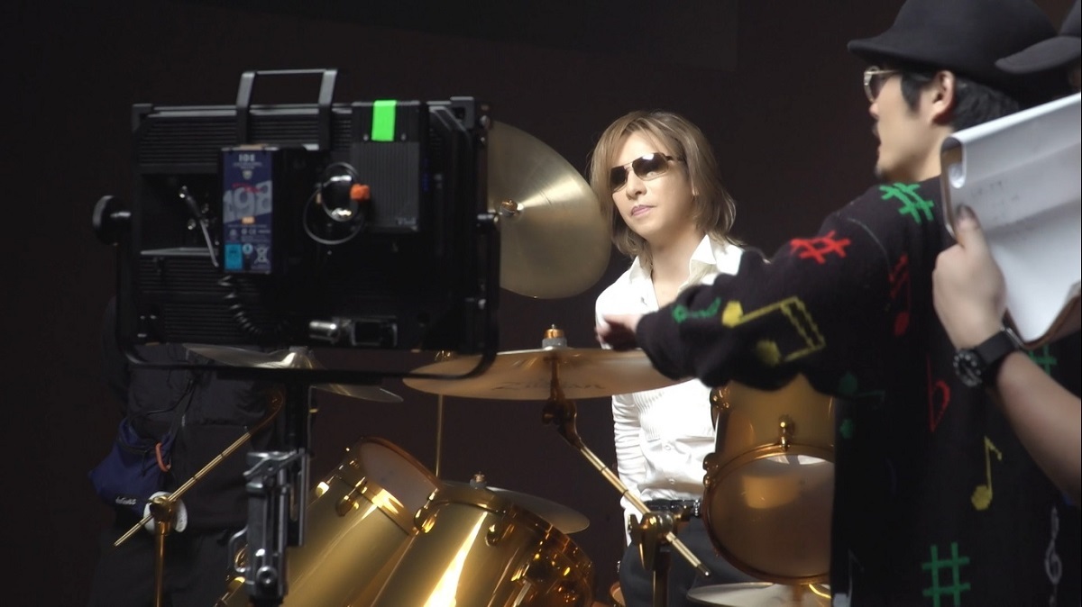 撮影現場では、僅かな角度の違いを調整し、入念にドラムセッティングをするなど、撮影前からただならぬこだわりを見せたというYOSHIKI。1テイク目から全力でドラム技術を披露し、完璧で迫力のある演奏にスタッフから「かっこいい…!」という声と共に拍手が沸き起こるも、「2箇所くらい気になるところがあるな、もう1回やっとくか!」と納得がいくまで演奏。スタッフから拍手が起きたにも関わらず「60点くらい」と自身の演奏を厳しく評価し、モニターを積極的にチェックし「どっちがかっこいいかな?」と監督に相談するなど、一切の妥協なく撮影に向き合っていたそうだ。