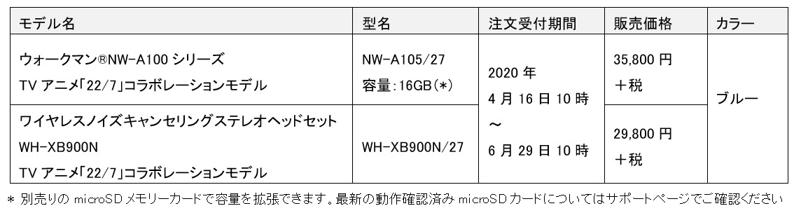 TVアニメ『22/7(ナナブンノニジュウニ)』とコラボしたウォークマンとワイヤレスヘッドホン
