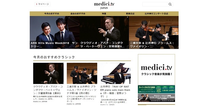 クラシック情報サイト『medici.tv JAPAN(メディチ・ティーヴィー・ジャパン)』は、2020年4月17日(金)から10週連続で、昨年行われた<サントリーホールARKクラシックス>のクラシック・コンサート映像を毎週、無料で公開することを決定し、最初となる5つのラインナップを発表した。