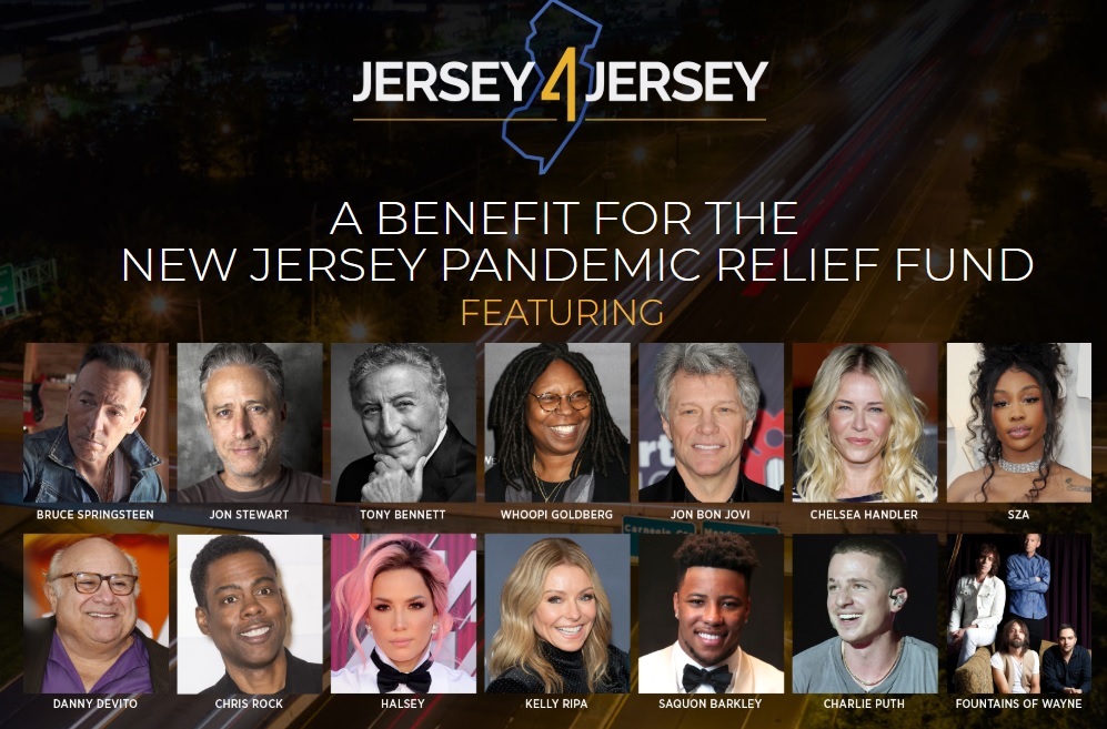 『JERSEY 4 JERSEY Benefit Show』には、トニー・ベネット、ホールジー、チャーリー・プース、SZA、ダニー・デヴィート、ウーピー・ゴールドバーグ、チェルシー・ハンドラー、クリス・ロック、ジョン・スチュワート、チェルシー・ハンドラーらが自宅から出演する。
