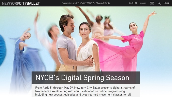 2020年4月21日(現地時間)よりニューヨーク・シティ・バレエ団がオンラインプログラム「NYCB's Digital Spring Season」(https://www.nycballet.com/Season-Tickets/Digital-Spring-Season.aspx)をスタートする。
