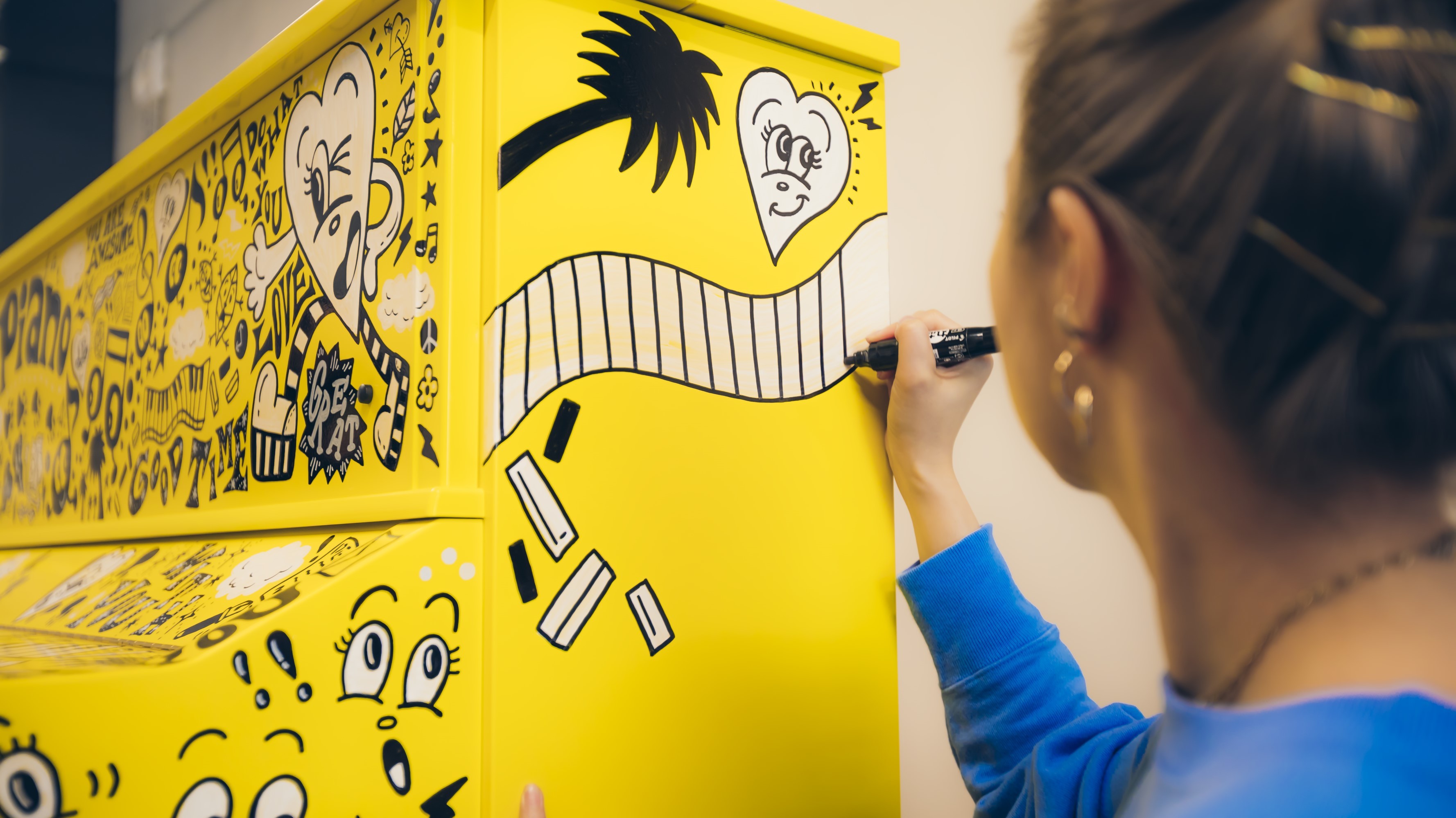 本展覧会のために書き下ろしたイラストはもちろん、オリジナルキャラクター「DON'T TOUCH 君」の装飾や、彼女が手掛け今後商業施設やフェスに設置される予定のヤマハのストリート・ピアノ「LovePiano」の5号機を展示予定だという。