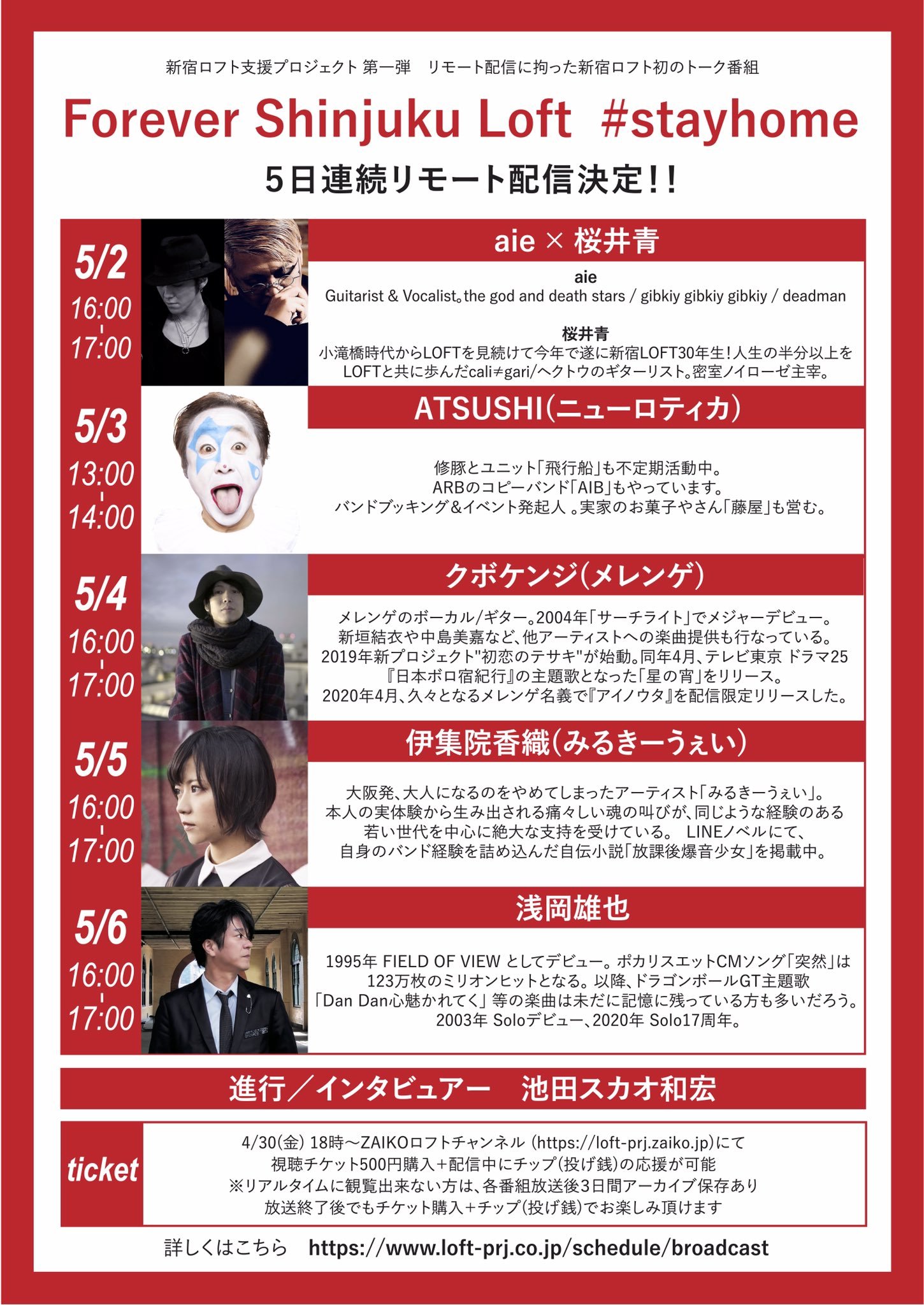 新型コロナウイルスの感染拡大予防止による緊急事態宣言の発令を受け、営業自粛中である新宿ロフト発信の支援プロジェクト「Forever Shinjuku Loft」の第一弾。新宿ロフトと所縁あるバラエティーに富んだゲストを迎え、新宿ロフト初の1時間トーク配信番組となる。なお、チケットは現在「ZAIKO」にて販売中。
