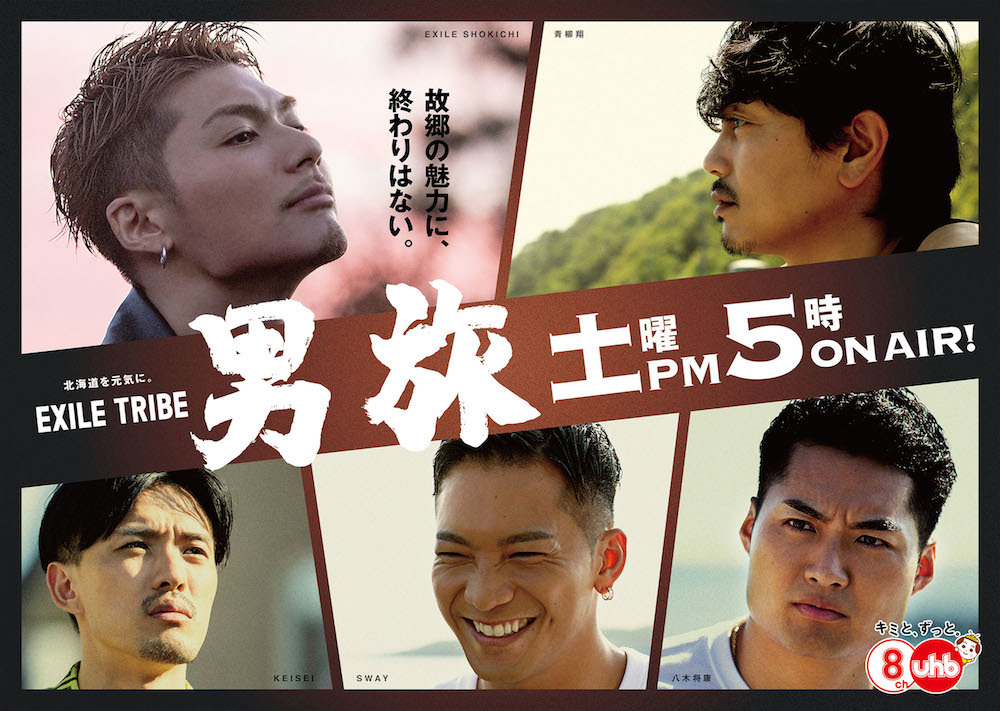 EXILE SHOKICHI、青柳翔、SWAY、八木将康、KEISEIの5人が出演する北海道のローカル番組『EXILE TRIBE男旅』(UHB北海道文化放送)が、LDH公式YouTubeチャンネルで8日から無料配信されることが決定した。