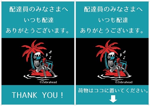 イラストは、新型コロナウイルス感染症が拡大する中、日々物流を支えるドライバーや配達員に対する感謝を、ゼブラヘッドによるオリジナルのデザインで表現。プリントして玄関や宅配ボックスに貼り付けて使用するもので、「配達員のみなさまへ、いつも配達ありがとうございます」と日本語のコメントが記載されている。