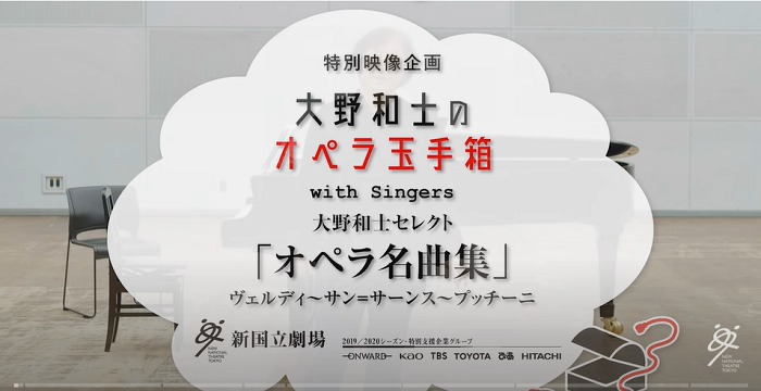 新国立劇場が、映像版・大野和士のオペラ玉手箱with Singers「大野和士セレクトオペラ名曲集」ヴェルディ~サン=サーンス~プッチーニを新国立劇場YouTubeチャンネル上で公開した。