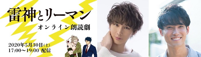 2020年5月30日(土)ライズコミュニケーションによるオンライン朗読劇第1弾『雷神とリーマン』が配信されるが、主人公の雷遊役にTakuya、大村役には聖矢が決定した。