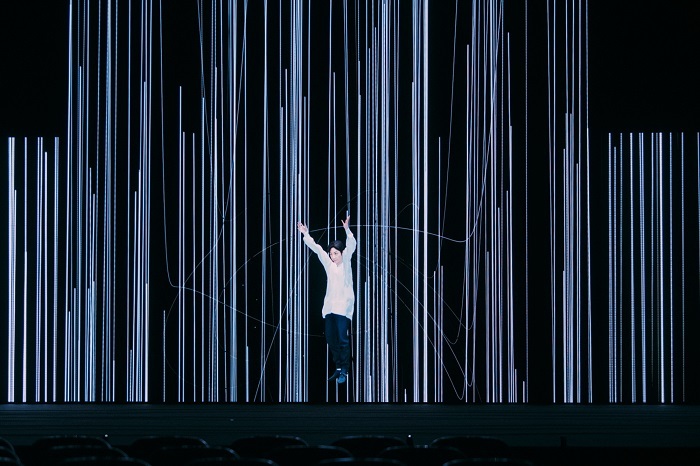 この公演の見どころは、アナログとデジタルが正面からぶつかり合って人間存在に揺らぎを与えるというところにあるかと思います。「最新テクノロジーと伝統的身体感」その共存からこそ生み出される、全く見たことのない新しいパフォーマンスが皆さんも体感できる作品かと思います。今はSNSで名前を変えて違う人格になったりする事は皆さん慣れているけど、場所という次元を変えたり、時間という次元を変えたり、自己存在に浮遊感を与える、そういう貴重な体験ができると思います。これからの新しいパフォーマンスはやっぱり、世田谷パブリックシアターから生まれるのだと実感できる公演だと思います。今を逃さず、ぜひご覧になっていただきたいと思います。