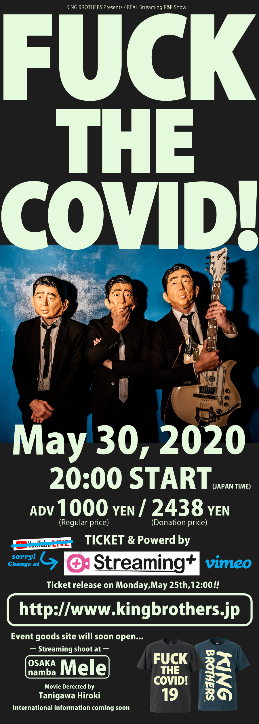 2020年5月30日(土)20時から、KING BROTHERS初の有料配信ストリーミングライブ『FUCK THE COVID!』の実施が決定した。特設会場となる大阪・難波meleより配信される。