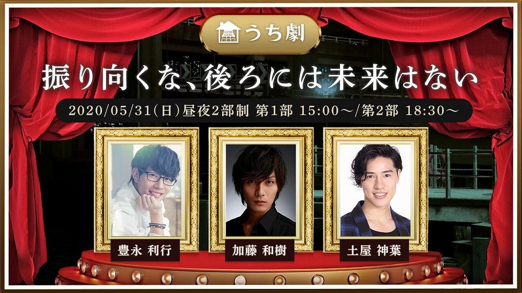 2020年5月31日(日)に、加藤和樹、豊永利行、土屋神葉による朗読劇、うち劇『振り向くな、後ろには未来はない』が、ライブ配信で開催されることが決定した。