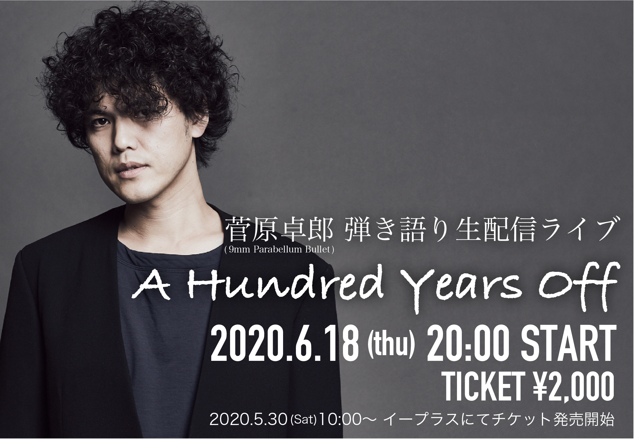 9mm Parabellum Bulletの菅原卓郎が、6月18日(木)の20:00より無観客での生配信ライブ『A Hundred Years Off』をイープラス「Streaming+」にて開催することを発表した。
