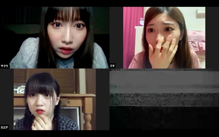 開演時間の20時になると画面には主人公サクラ(野村実代)が1人登場。友人のアイ(大谷悠妃)に招待を受け、Zoomに参加したものの誰の姿も見えず不審に思っていると、ミキ(平田詩奈)とカエデ(赤堀君江)が現れる。この日はサクラの誕生日で、サプライズのオンライン誕生会が開催されたのだった。自粛生活が続く中、久しぶりに顔を合わせた仲間たちと楽しい時間を過ごすサクラ。しかし、ふと見ると誰だかわからないメンバーが一人いて…。彼女が画面から消えると不可解な出来事が次々と起こっていく。