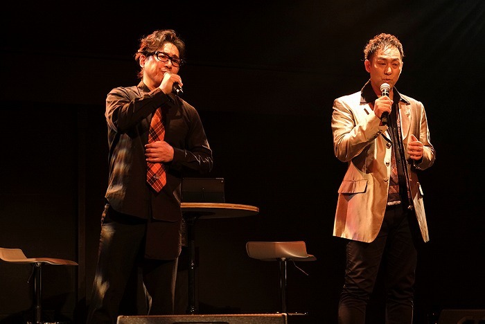 その後1曲披露した後、ゲストとして、同じくミュージカル俳優として活躍する坂元健児が登場。劇団四季時代の同時期に活躍した2人の2ショットということもあり、画面上に2人が映ると、貴重な2ショットに、チャット上ではファン同士が盛り上がりを見せた。