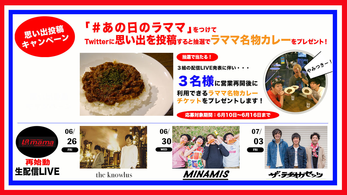 また、Twitterでは『#あの日のラママ』といったRTキャンペーンがスタートした。このキャンペーンは、『#あの日のラママ』を付けて思い出をツイートした人の中から抽選で3名に、営業再開後に使えるカレーチケットをプレゼントする企画となっている。応募対象期間は6月10日から16日まで。