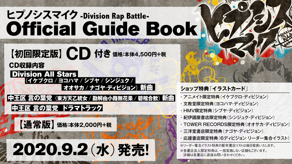 なお、ヒプノシスマイクは9月2日(水)に、初のオフィシャルブック「ヒプノシスマイク-Division Rap Battle- Official Guide Book」の発売が決定している。