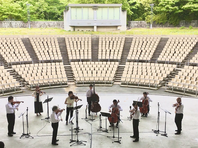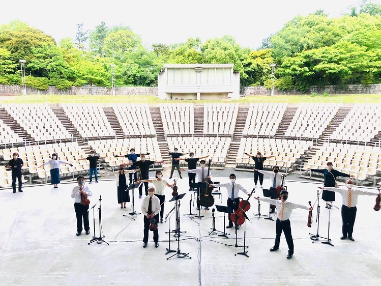 大変な中で頑張って頂いている皆さんに、私達から感謝を込めて音楽を贈れないものかと話し合いました。残念ながら、ナマの音楽を自由に演奏出来る状況にはまだありません。音楽はネットによる配信ですが、この為に新緑の野外音楽堂で、風を感じ、小鳥たちのさえずりを聴きながら心を込めて演奏したので、開放感に溢れた素敵な演奏になったと思います。皆さまが私達の音楽を聴いて、明日も頑張ろう!と思って頂けるなら、これほど嬉しい事はありません。