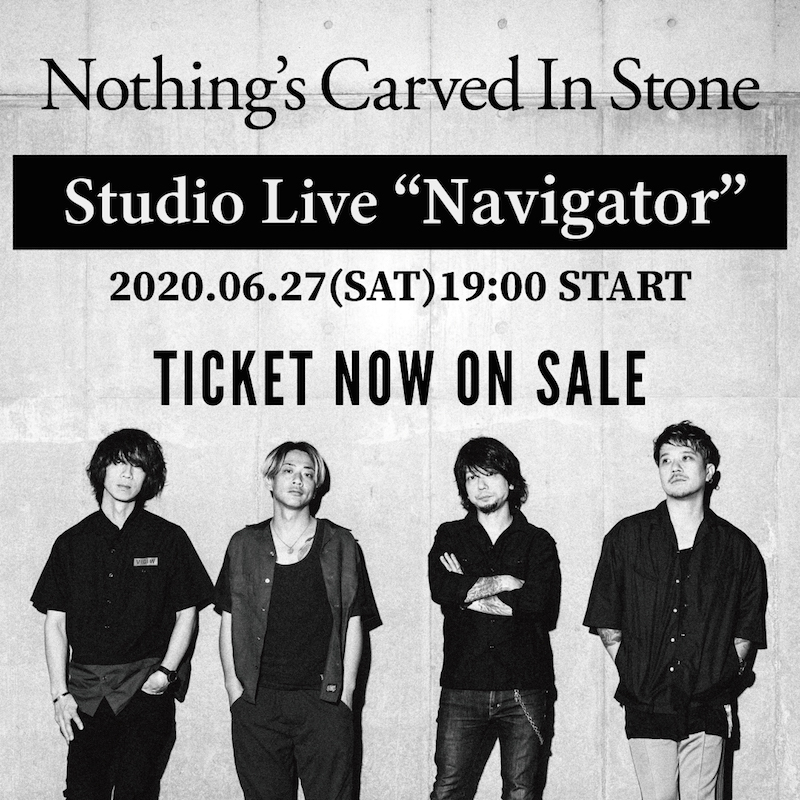 また、6月27日(土)19時より有料生配信ライブ『Nothing’s Carved In Stone Studio Live “Navigator”』を開催することが決定。通常の配信より音声のクオリティを向上させるべく、レコーディングスタジオでのスタジオライブを生配信するもので、イープラス Streaming+上で配信される。チケットの発売は本日・6月12日(金)から。