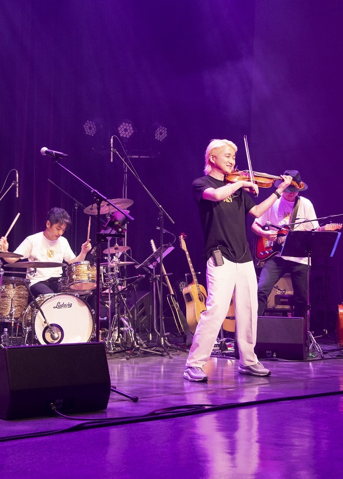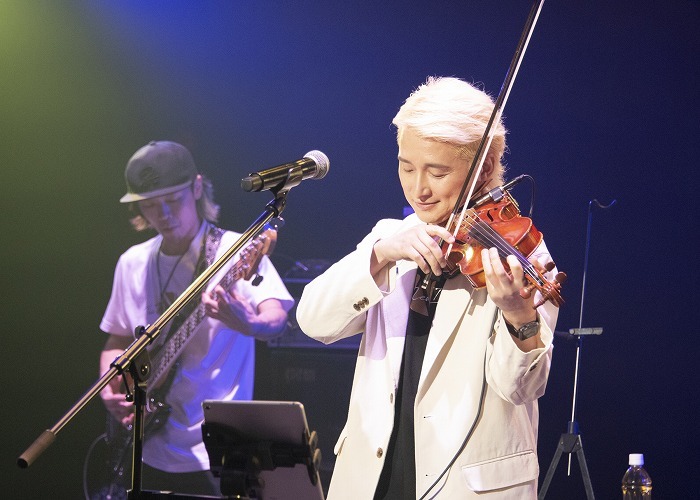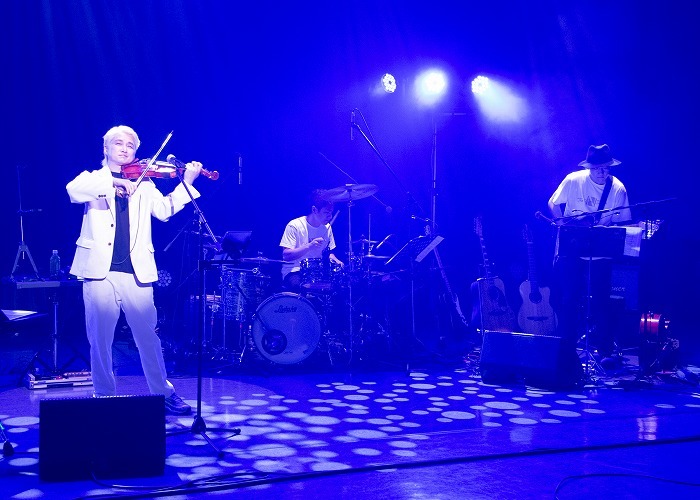 この日は、今年4月、東京と大阪で開催予定だった15周年記念ライブのメンバー、松本圭司(key)、二家本亮介(b)、伊藤ハルトシ(g/vc)、齋藤たかし(ds)とのステージ。大人の色気を存分に漂わせ、息の合ったインタープレイが随所にキラリと輝きを放つ。新旧の代表曲が、次々と彩り鮮やかにプレイされ、ライブ配信中には、視聴者もリアルタイムでチャット応援。「客席の最前列で観ているよう」との感想も寄せられ、終始熱い声援が送られた。