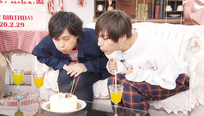 2人だけのバースデーパーティーは、今年2月29日に開催予定だった劇場舞台挨拶の中止を受け、急遽実施されたもの。2月29日は、4年に1度の誕生日を迎えた一条シン(CV.寺島惇太)と如月ルヰ(CV.蒼井翔太)の誕生日当日という特別な日だっただけにうれしいニュースだ。