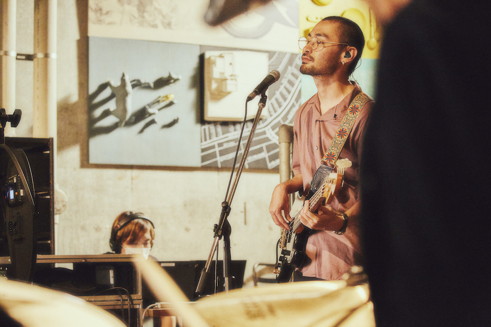 ここでメンバー紹介を挟んで、Keishi Tanakaひとりがスタジオに残りピアノへと移動した。「ピアノは弾けませんが(笑)、ちょっとやってみたいと思います」と奏でたのは、ザ・なつやすみバンドのカヴァー「せかいの車窓から」。大切な人を置いて、遠くの街へと離れていく電車の中で、離れるほど恋しさが募る気持ちを綴ったこの曲。会いたかった、本当は会えたはずのツアー11カ所のお客さんたち、会えないからこそ会いたさが募る気持ちをこの歌に託したように思えて、少しジンとしてしまう。またみんなで会える日が来るといいな、それを心待ちにしている彼自身の気持ちが透けて見えるようだ。