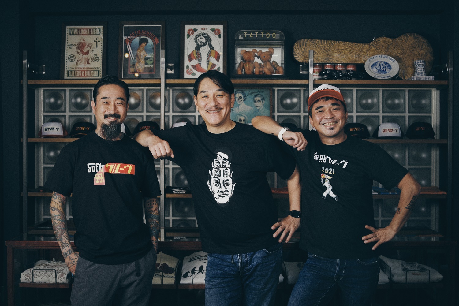 電気グルーヴとファッションブランド・SOFTMACHINEのコラボレーションライン「SOFTグルーヴ」が、本日6月16日よりSOFT GROOVE ONLINE STORE限定で予約販売をスタートした。