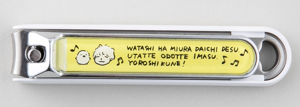 当時と同じデザイナーが現在も貝印に在籍しており、テイストはそのまま、テキストを「WATASHI HA MIURA DAICHI DESU. UTATTE ODOTTE IMASU.YOROSHIKUNE!」とし、鳥の横に本人の似顔絵を添えた“三浦大知仕様”の一品が完成したという。
