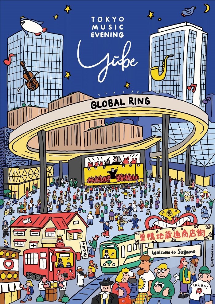 『Tokyo Music Evening Yube』は、アフター・ザ・シアターおよびナイトライフ観光の⼀環として、池袋西口公園野外劇場「GLOBAL RING THEATRE(西池袋 1-8-26)」で毎週水曜日午後7時から定期開催している野外コンサート。