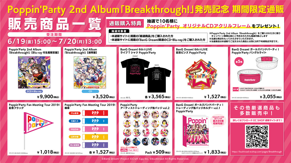 ◆Poppin’Party 2nd Album「Breakthrough!」発売記念期間限定通販決定!
