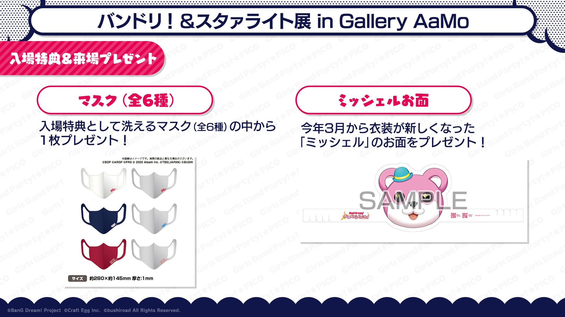 入場特典はマスク(全6種)、来場プレゼントはミッシェルお面となる。