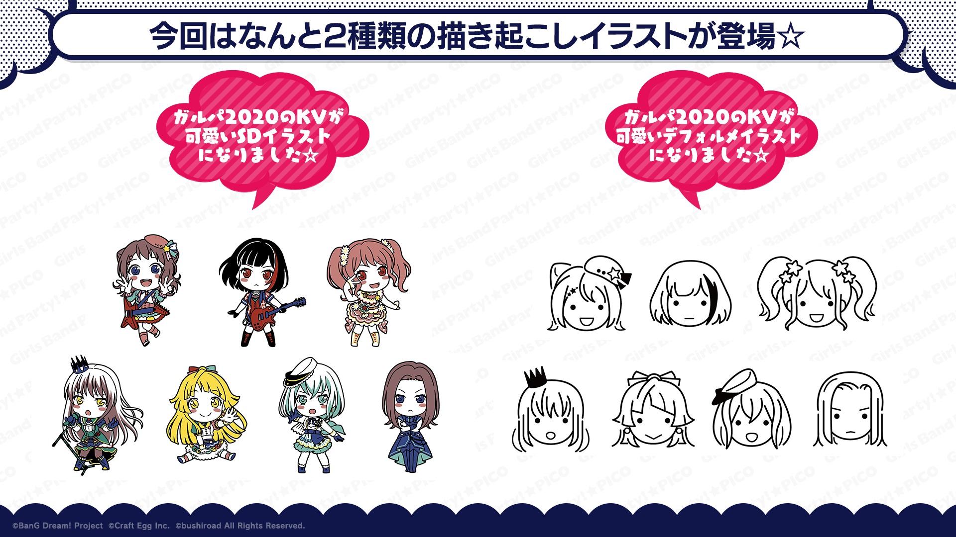 ガルパ2020キービジュアルの新規描き起こしSDイラストとデフォルメイラストを使用したグッズを販売予定とのことなので、こちらも楽しみだ。