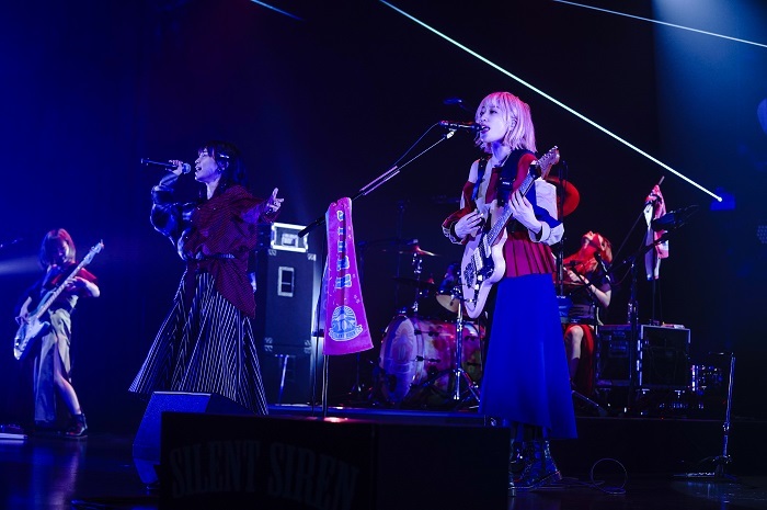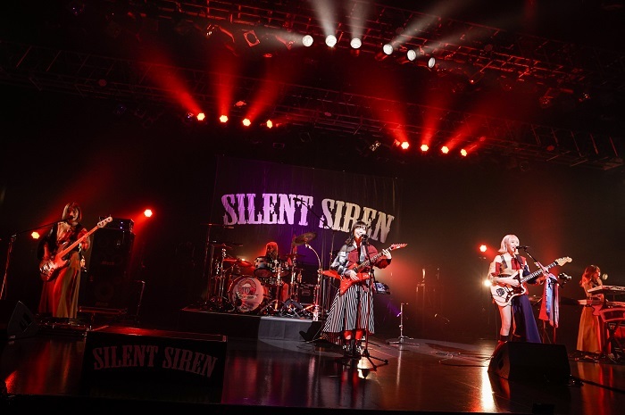オープニングSEからライブは「フジヤマディスコ」で幕開け、「八月の夜」へ。「こんばんはSILENT SIRENです!半年ぶりの今年初ライブ、最後までよろしく!」ゴールデンボンバー鬼龍院翔による提供曲「聞かせてwow wowを」、ライブの定番曲「天下一品のテーマ」、そして「恋のエスパー」とアッパーなナンバーを立て続けにパフォーマンス。そして中盤では、「HERO」、「ALC.Monster」、「KAKUMEI」と視聴者の胸を打つエモーショナルな楽曲が披露された。