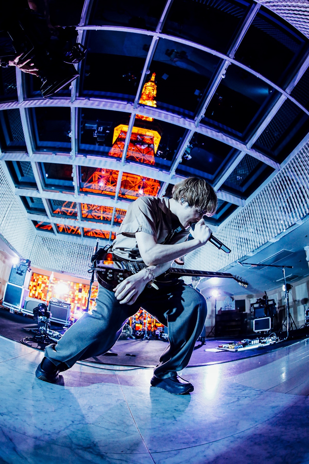 「Hey My Bro.」で肩を組み、「ライクアマウンテン」で駆け上がると、再びのMC。「突き破りたい、ここ(天井)を」「東京タワー綺麗だなあ」と感情をありのまま言葉にしたのはセイヤ。東京タワーの赤色に頑張れと言われている気がした、会場に着いた瞬間にパワーが漲った、と語ったのは柳沢。プリティはなんとこの日初めて東京タワーに来たそうだ。牧は「もう普通にライブのテンションでやらせてもらってます」としつつ、観客から返ってくるリアクションがないことについて「やっぱり寂しいですね」と本音を漏らす。さらに、ライブハウスでの“密”な光景が遠のいてしまったことに触れながら、ライブ終盤に向けて、そして未来に向けて、「そうじゃなくなってしまった今をどうやって楽しむか。自分で手にして見つけ出そう。楽しいことは自分で考えて創り出す。そうして俺たちと、まだまだ、まだまだ騒いでいこう!」と切り出した。