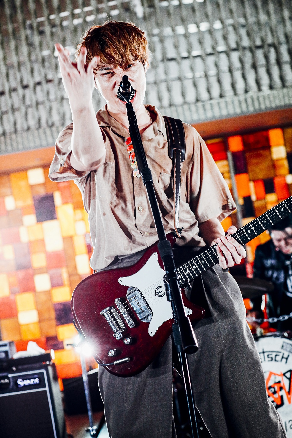 最初のMCに入るや否や、牧はスタンドからマイクを引っこ抜き、「あちー!」と一言。その直前、3人のうちの誰かが「あっちー!」と笑っているのも微かに聞こえてきた。ライブはまだ始まったばかりだが、既に汗を光らせている4人。昨年秋に療養から復活、夏にライブをするのは2年ぶりのプリティは「こんなに汗かくと思わんやった!」とのこと。