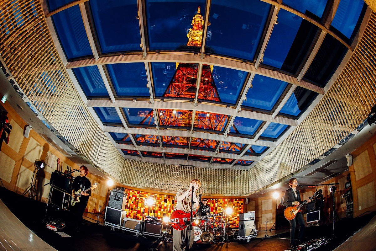 ステージに立つ前のメンバーが「ゴー! バニラズ! ゴー!」と声を合わせているところまで聴けてしまうのは、配信ライブならではのご褒美だろうか。天井が硝子張り、東京タワーを見上げるようなロケーションの会場。いつものライブと同じように、「We are go!」をSEにメンバーが入場した。
