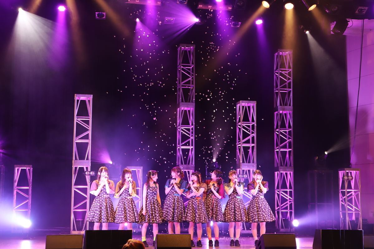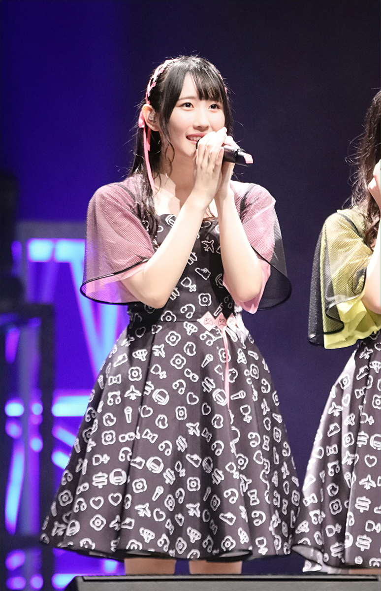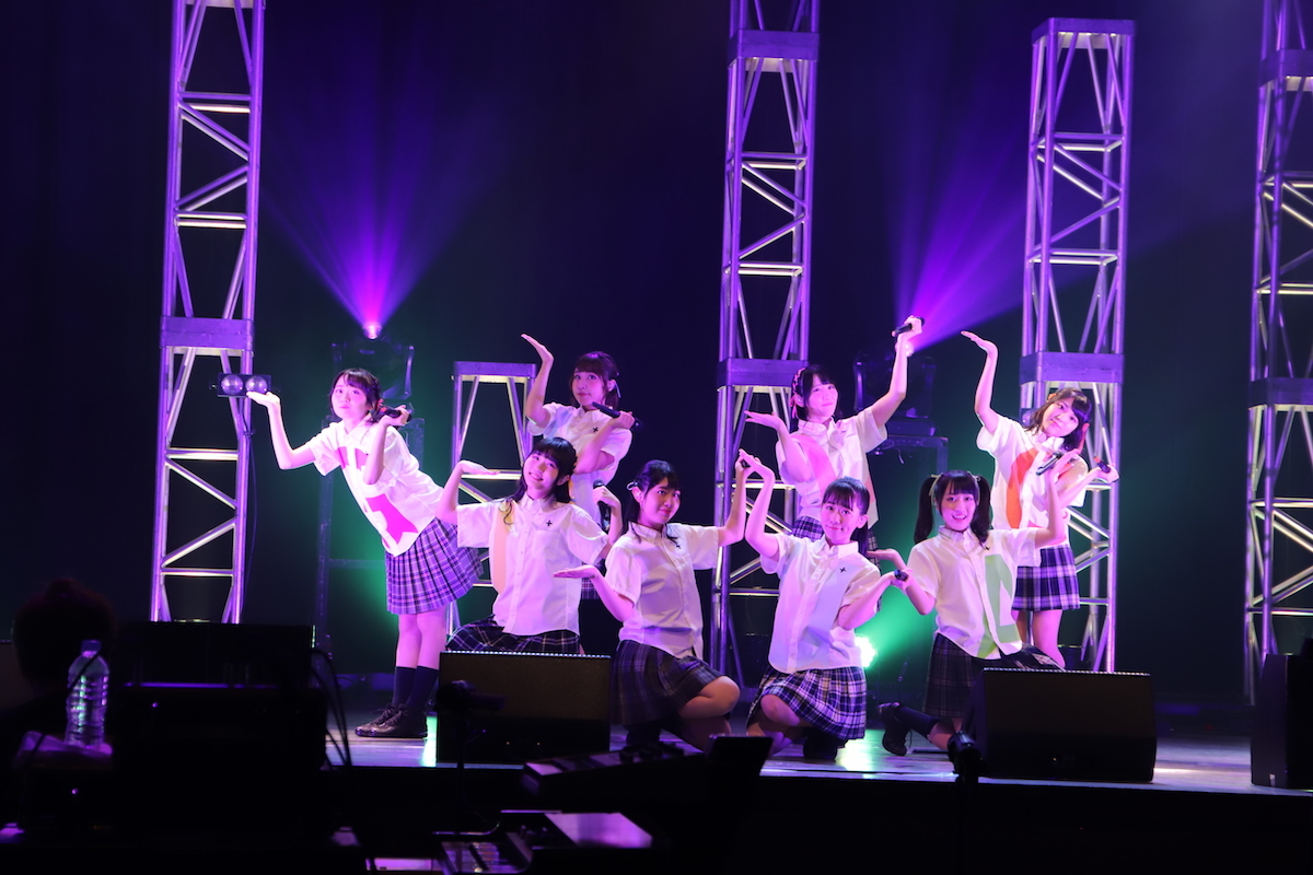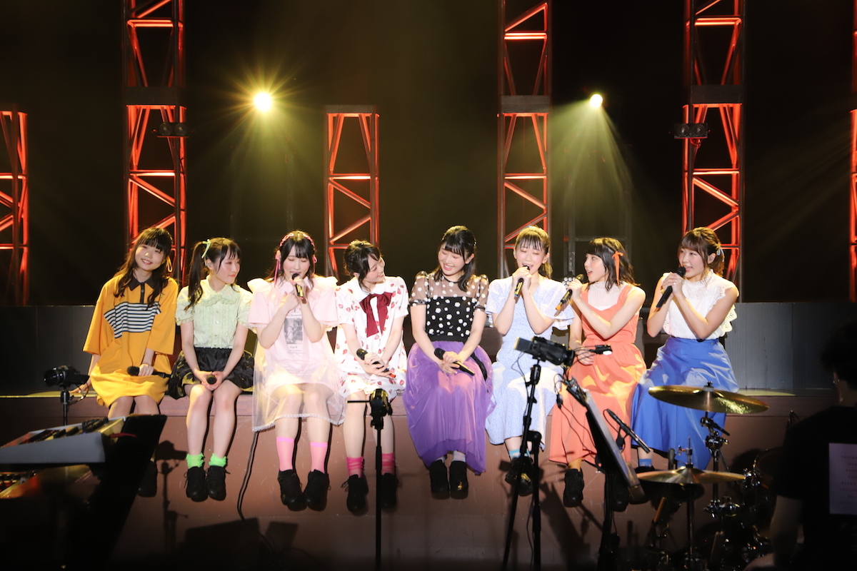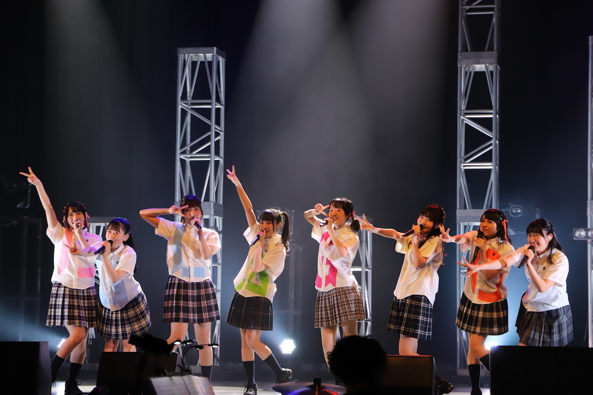 その勢いのままデビューシングル「はじめてのかくめい!」も歌い上げると、「私たち8人が全力で楽しい時間を、あっという間かもしれないこの瞬間を、希望にあふれたステージをお届けします!!」と力強く宣言し、アルバム収録曲「トーク!トーク!トーク!」へ突入。
