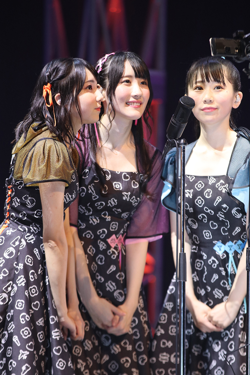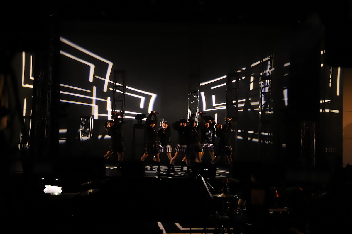 そして、聴いている人皆の気持ちを高めてくれるような新曲「SCENE B-2:上々だ」と、「パジャマdeパーティー」を続けざまに披露していく。ここで舞台が暗転すると、彼女たちの心の内を明かすかのようなモノローグとともに映像が流れ出し、雰囲気が一変。