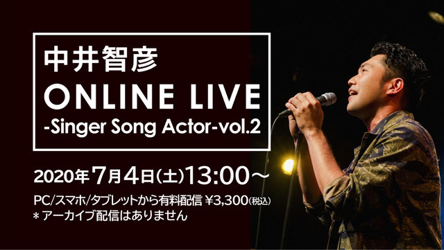 中井智彦が、2020年7月4日(土)に恵⽐寿天窓.switchより、オンラインライブ『中井智彦 ONLINE LIVE-Singer Song Actor』を開催する。