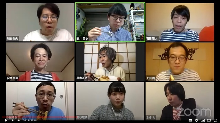 YouTube Live「ヨーロッパ企画の生配信」。6/1配信の「みたび集まれる人集合! サンドイッチを食べる会」より。