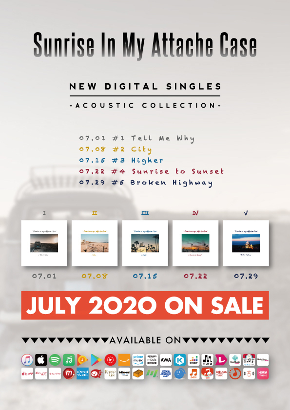 Sunrise In My Attache Caseが、自身の楽曲をアコースティックアレンジしたセルフカバーシングル5曲を7月の毎週水曜日に1曲ずつ各配信サイトにて配信することが決定した。