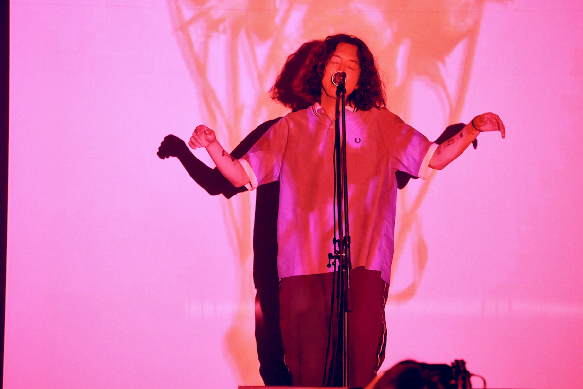 キタニの背後に彼のシンボルマークが現れると、神々しい白色を基調としたバックのライトが「I DO NOT LOVE YOU.」と共にリスナーに向けて、この自分の悲しみや憎しみや苦しみに寄り添って共有して傍らに居て欲しいと心の手を伸ばす。プリセットしたコーラスも奥深さとふくよかさを与えた同曲。対してウェットなトーンの「花の香」ではトロピカルな音色にトラップミュージックが夏のこの時期同様、ややねっとりとした雰囲気をもって身体に絡みついてくる。ここでは明るいコーラスが柔らかく優しく、その歌われる情景的であり心情的な歌をさらに可視化させてくれた。