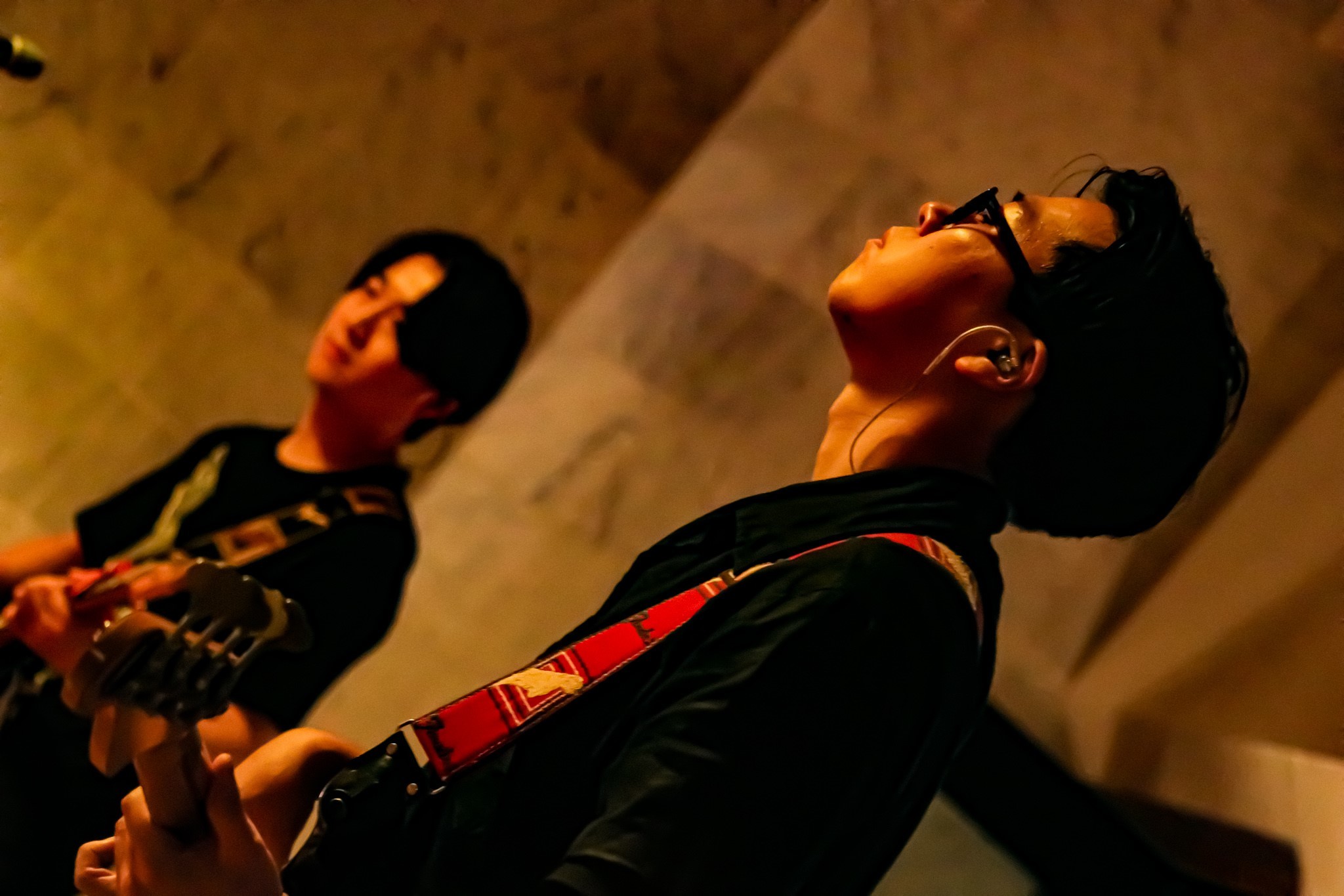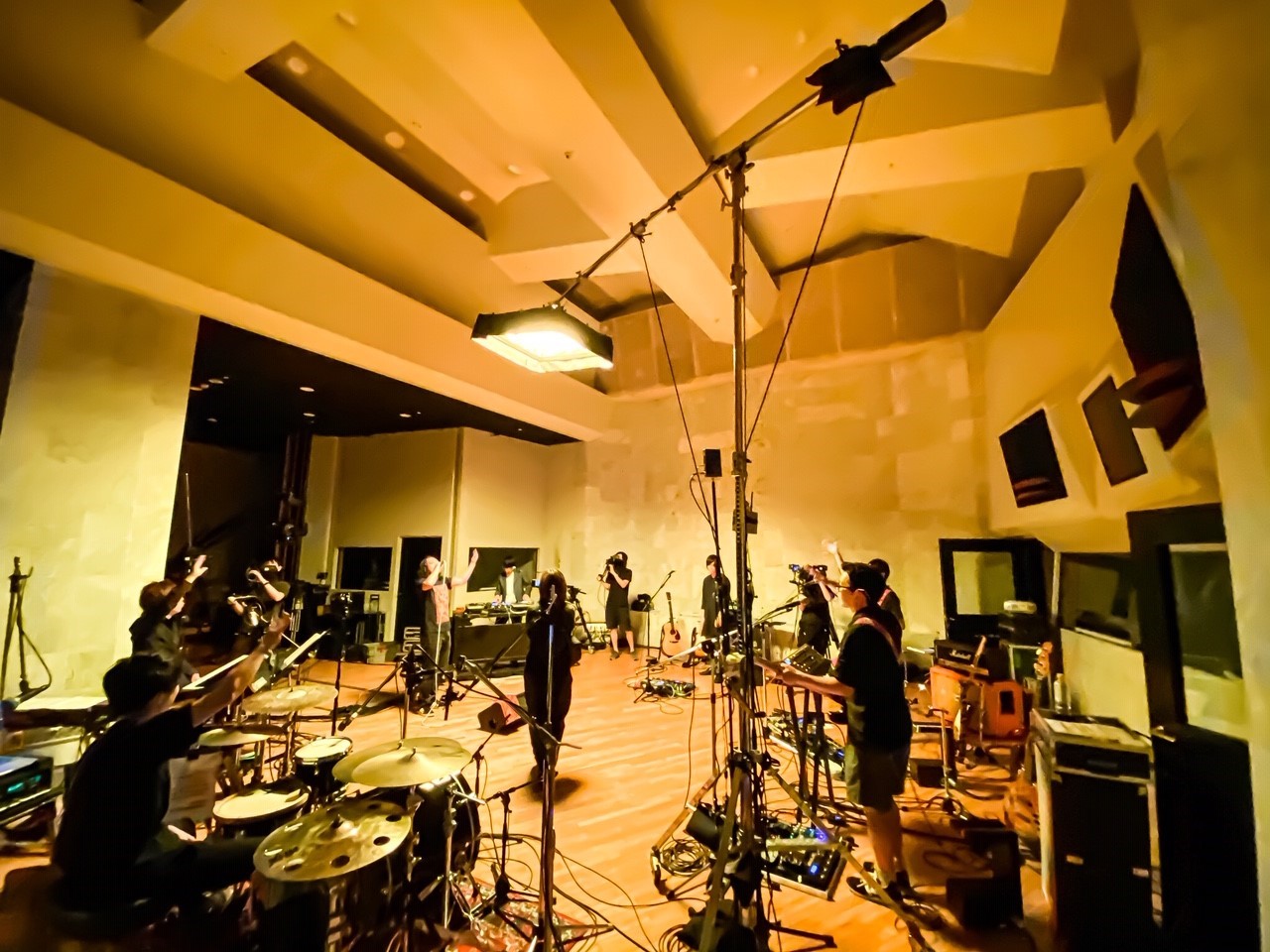 このように、2組が交互に演奏。ミュージシャン同士のセッションにカメラが潜入、それを我々が覗き見させてもらっている、という雰囲気だったこの日。通常の対バンライブだと、“1組目の演奏→舞台転換→2組目の演奏”という形式が主なため、こういった対バンライブは新鮮だ。無観客の配信ライブの場合、同じ場所に観客がいない分、アーティスト側がステージに立つ必要がなくなる。広い場所で演奏できるから、2組分同時にセッティングすることも可能になる。この状況を逆手にとった妙作といえるだろう。また、“ライブ”というより“セッション”色が強く、ジャンルは違うが互いにリスペクトしあう温度感がよく伝わってきたのも嬉しかった。因みに、交互に演奏するアイデアを出したのは、andropの前田恭介(Ba)。“対決”ではなく“一緒に作る”という温度感を出したかったため、このような構成を提案したのだそうだ。
