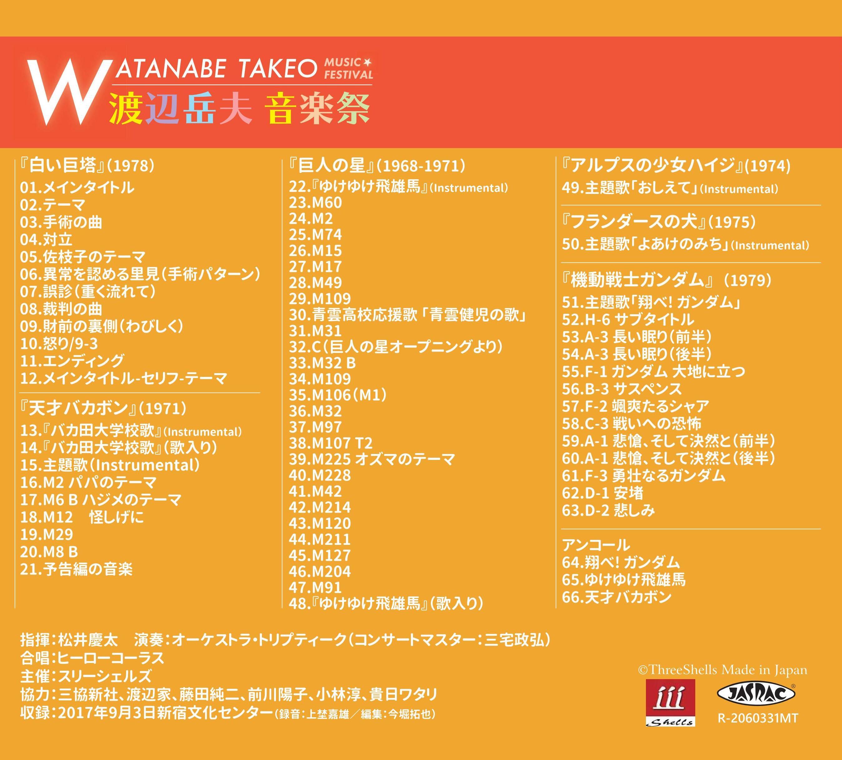 『巨人の星』『機動戦士ガンダム』など、誰もが知る主題歌とBGMを作った作曲家 渡辺岳夫氏(1933-1989)の、2017年に開催されたオーケストラコンサート『渡辺岳夫音楽祭』の模様がCD化され、7月17日(水)に発売される。