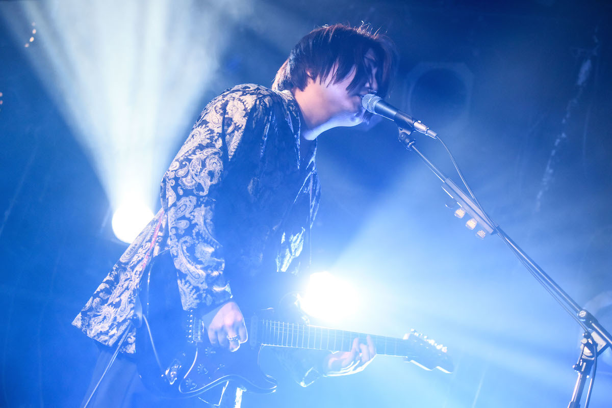 10分ほどの転換を挟み、ライブがスタート。ライブハウスでのライブは彼らにとっても相当久しぶりであり、深い青に染まった渋谷クアトロのステージへとメンバーが登場するシーンには静かな緊張感が漂っていた気も。しかし、ひとたび「Masquerade」の多国籍感のあるサウンドを鳴らしはじめ、挑発的な身振りと表情で井上竜馬(Vo/Key)がこちらを誘うと、画面越しながら一気にライブ感が増したことが分かった。木村雅人(Dr)が力強いビートを轟かせ、広瀬臣吾のベースがボトムを支える上にブラスやストリングスの音色が花を添えたのは「Higher」。服部栞汰(Gt)がお立ち台に片足を掛け、とびきり気持ちよさげにソロを弾く。うん、これこれ。