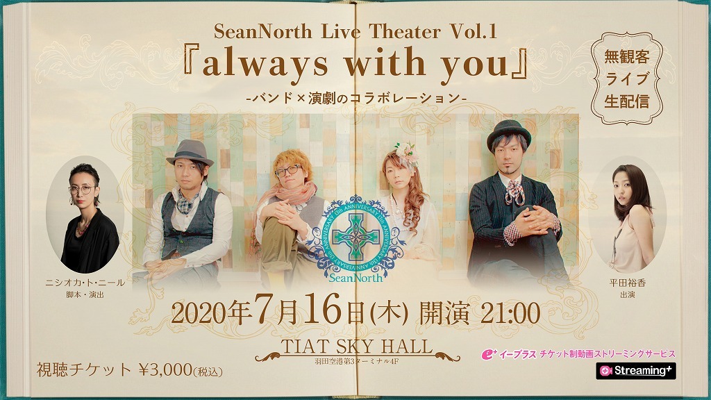 2020年7月16日(木)21:00より、イープラス「Streaming+(ストリーミングプラス)」にて、SeanNorth Live Theater Vol.1『always with you』を配信することが発表された。