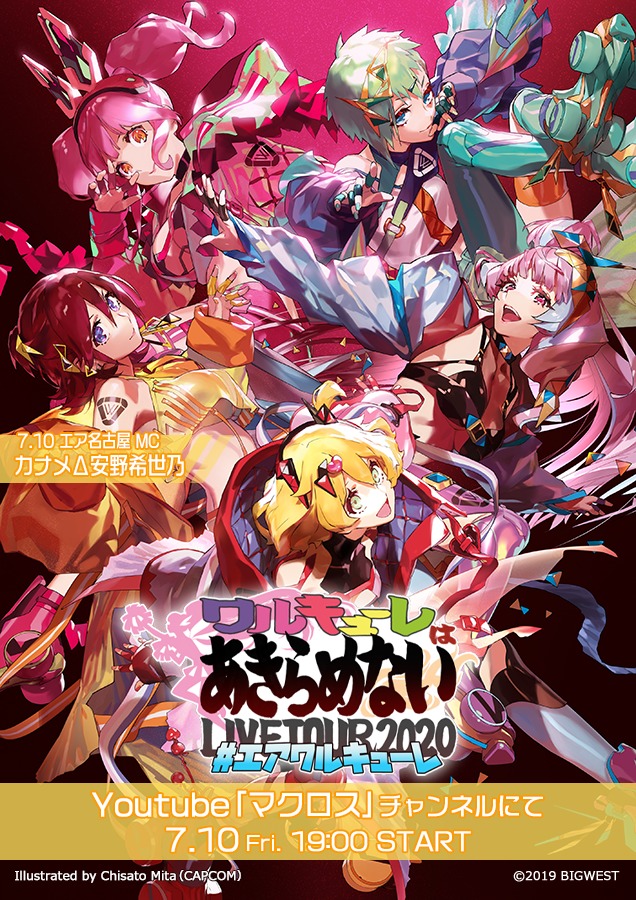 同チャンネルでは、ライブ配信第1弾として『#エアワルキューレ LIVE TOUR 2020 〜ワルキューレはあきらめない〜 @エア名古屋』が7月10日(金)19:00から配信する。