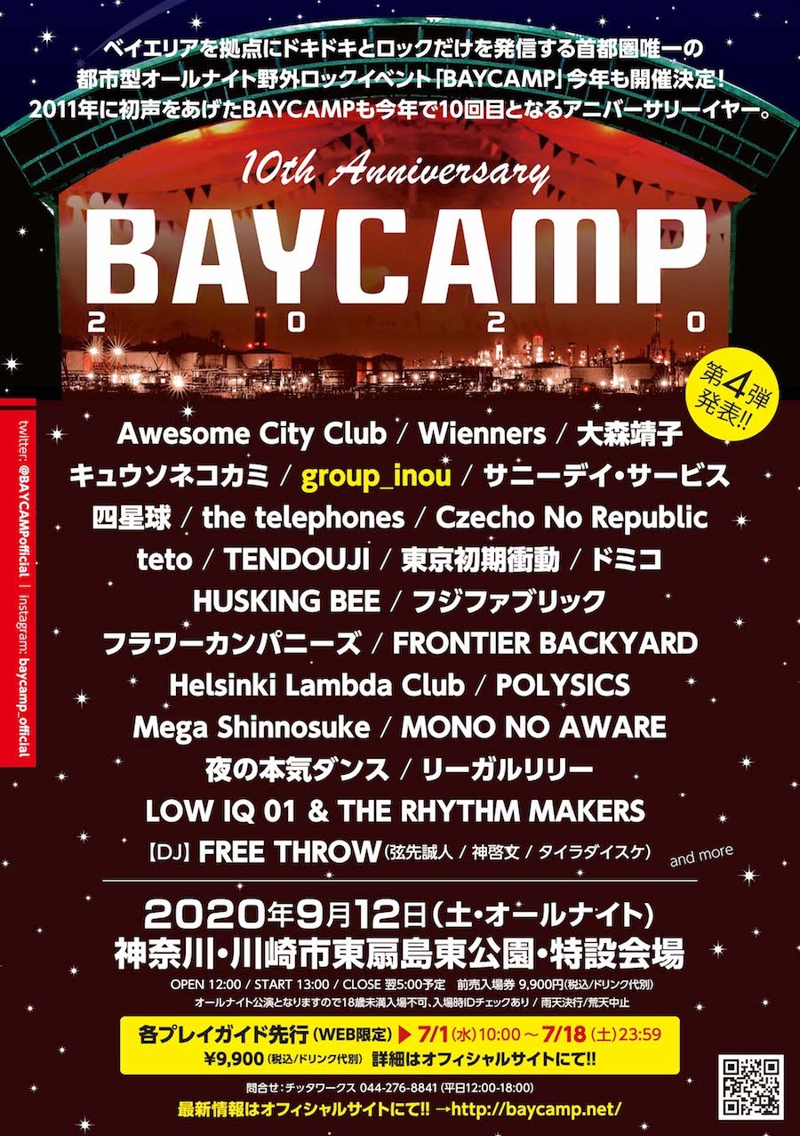 9月12日(土)に神奈川県川崎市東扇島東公園 特設会場で行われるオールナイト野外・ロックイベント『BAYCAMP』の第4弾出演アーティストが発表された。