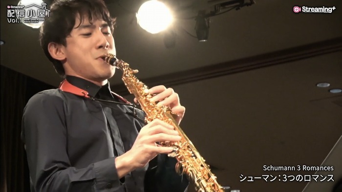 前半のラストを飾ったのは、上野が知られざる名曲と呼ぶバザンの『ロマンス』。優しく、しっとりとした旋律に心惹かれた。サクソフォンとピアノが繊細に重ねられ、対比と融合を繰り返しながら、綿密に織り上げられていく。静かな中に、豊かな強弱の色彩が光り、まるで楽器同士が対話をしているかのような好演に、思わず溜息が洩れた。リアルタイムのチャットには、「幸せな気持ちになります」や「小学校の娘はうっとり。母はご飯を作りながら聴かせていただいています」といったコメントが次々と寄せられた。上野も、観客からの生の声が寄せられることを喜んでいた。