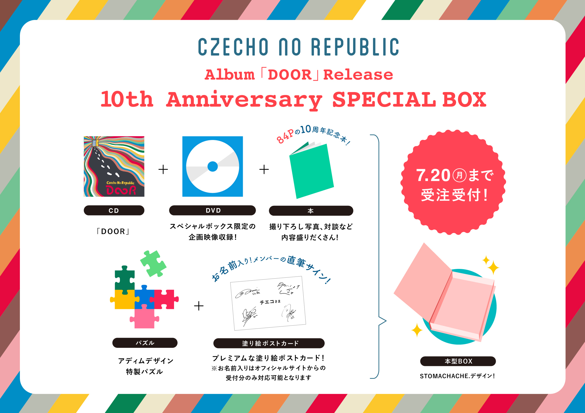 8月19日(水)に発売されるCzecho No Republicのニューアルバム『DOOR』に合わせ、バンド結成10周年を記念した『SPECIAL BOX』が、タワーレコード全店及びタワーオンライン、Czecho No Republicの『SPECIAL BOX』オフィシャル販売サイトでの完全受注限定生産でリリースとなる。