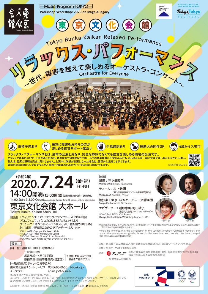 2020年7月24日(金)、東京文化会館にて、年齢、障害のあるなしや社会的背景に関わらず、あらゆる方が気軽にクラシック音楽を楽しめるコンサート『リラックス・パフォーマンス ~世代、障害を越えて楽しめるオーケストラ・コンサート~』が開催される。